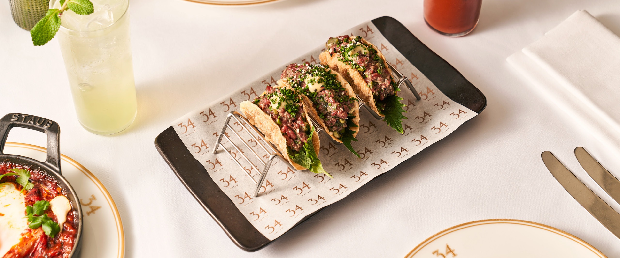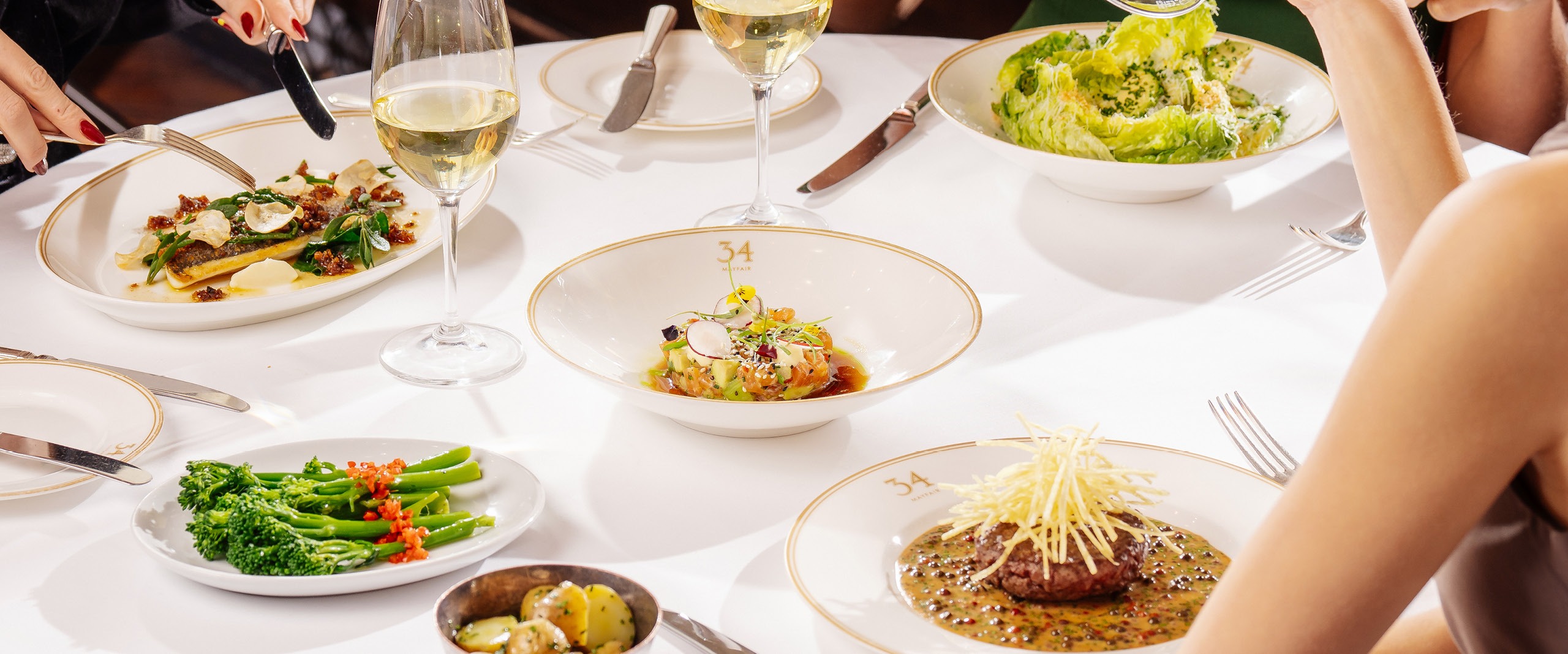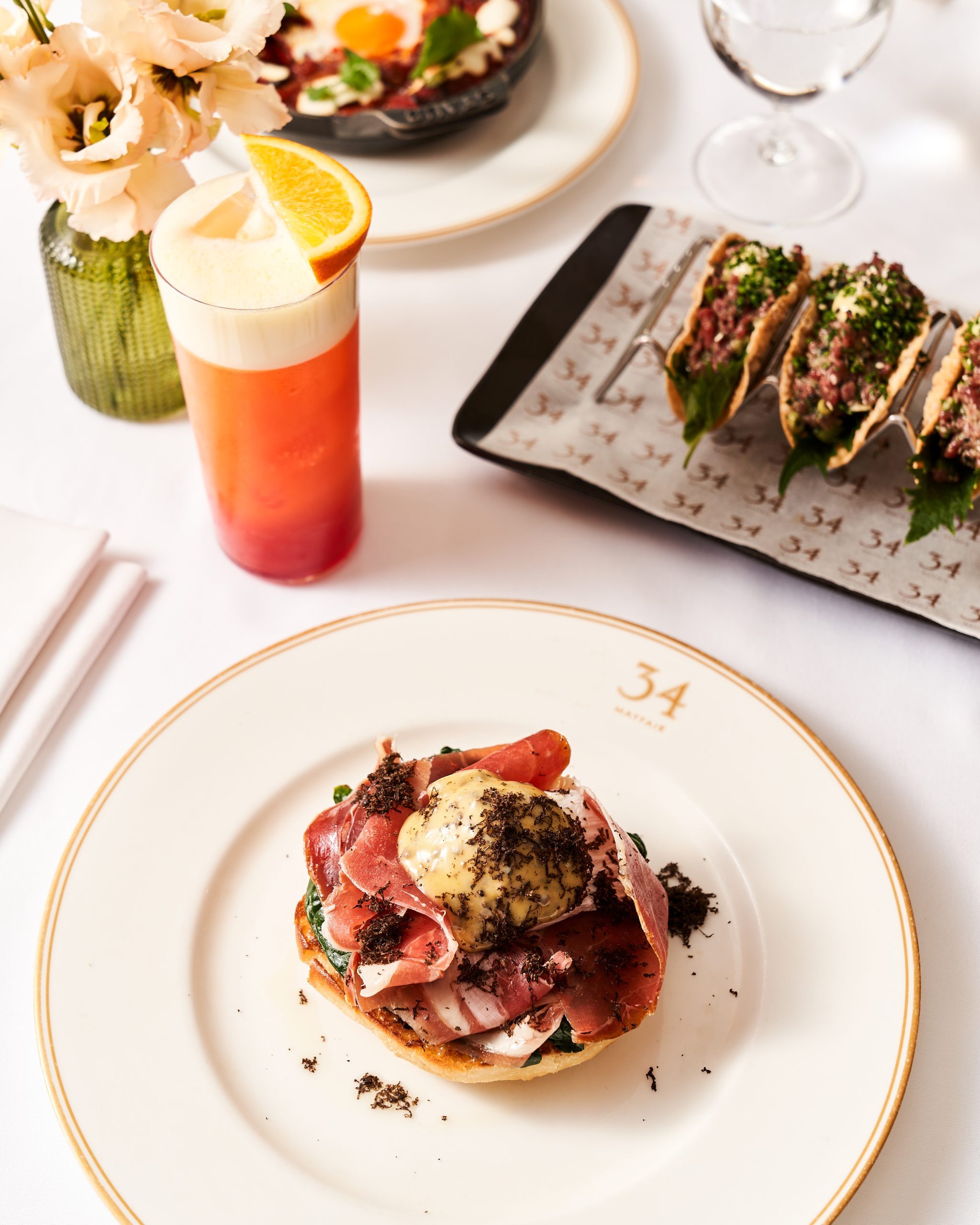 Tucked away between the grandeur of Grosvenor Square and the stylish boutiques of Mount Street, 34 Mayfair is a well-kept neighbourhood secret just waiting to be discovered. An elegant, enclosed terrace seduces passers-by with its lavish seasonal displays. Once inside, the warmest of welcomes envelops guests in the lively hum of the Art Deco inspired dining room. 34 Mayfair exudes a quiet confidence and convivial charm that doesn’t need to raise its voice in order to be heard.