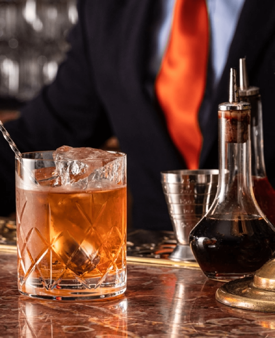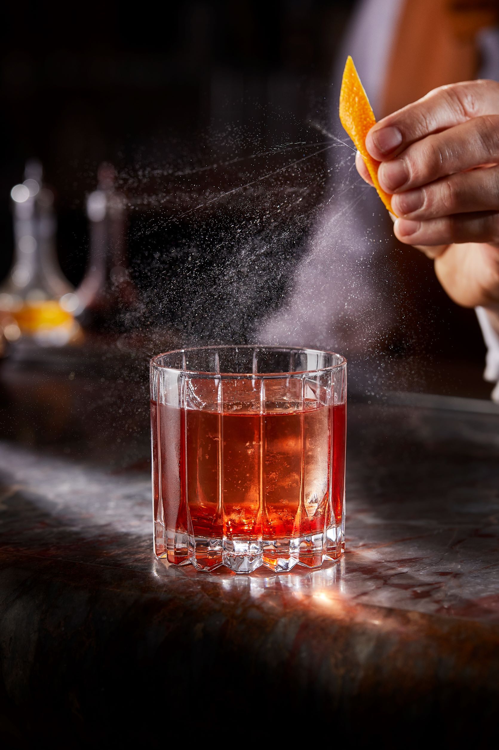34 Mayfair’s dazzling bar, with its red-marble countertop, antiqued mirrors and sparkling crystal glassware, is the perfect place for guests to enjoy an aperitif before their meal or to linger after, while the wine and conversation flow.